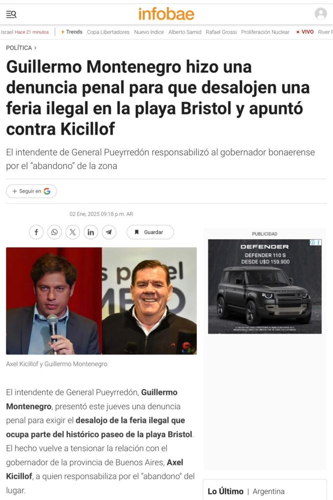 Este operativo no ocurre en el vacío. Se da en un contexto de máxima tensión entre el Ejecutivo local y la administración provincial. Cabe recordar que el intendente Guillermo Montenegro ya había formalizado una denuncia penal ante los juzgados federales de «La Feliz» solicitando el desalojo definitivo de este espacio. El jefe comunal fundamentó su pedido en informes de la Secretaría de Seguridad y Obras Sanitarias que advierten sobre un «riesgo cierto y serio en la seguridad y salubridad pública», además de calificar al sector como una zona de «abandono» por parte del gobierno de Axel Kicillof.