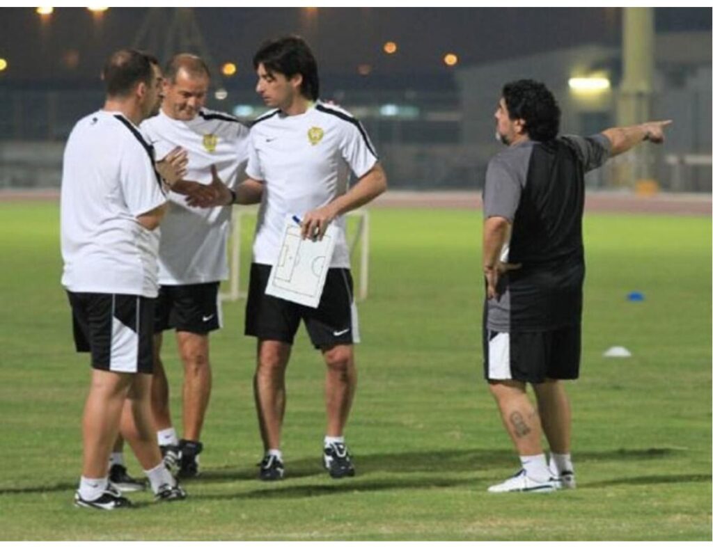 La experiencia con Diego fue increíble, increíble. Porque [es] el mejor jugador de la historia del fútbol y yo pude estar en su cuerpo técnico tratando de ser un buen ayudante. El día a día era algo espectacular porque era vivir todos momentos, momentos únicos.