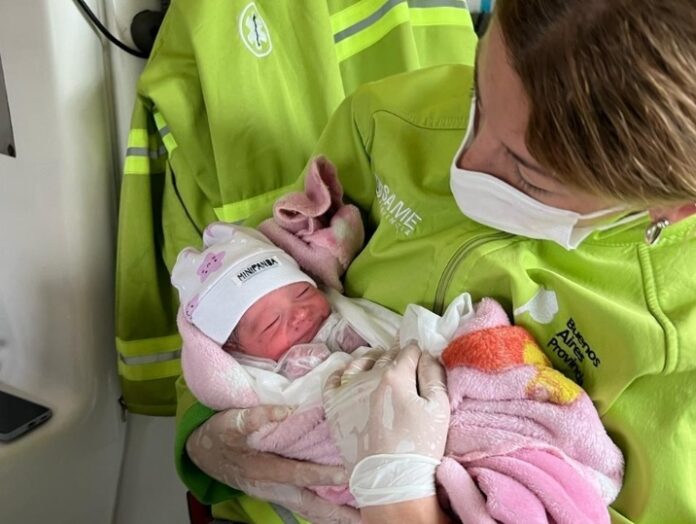 Este martes a las 8.30 la línea de emergencias médicas de la ciudad -107- recibió un llamado de una vivienda situada en Tripulantes del Fournier al 12300 señalando que una mujer había comenzado el trabajo de parto para dar a luz a su beba.