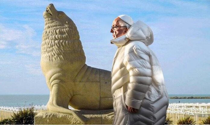Imagen generada con IA del Papa caminando por la rambla de Mar del Plata. Las deepfakes y la utilización incorrecta de la nueva tecnología pone en alerta al mundo.