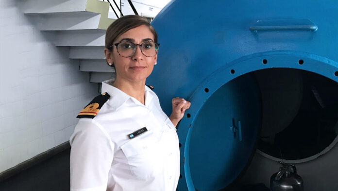 La cardióloga marplatense camina a paso decidido por la ESBU. Ya no se trata de los largos pasillos de los hospitales con los que estaba familiarizada, ni la carrera contrarreloj de las guardias médicas y el recorrido de las salas de internación. En la Escuela de Buceo -donde se forma a los futuros buzos navales-, la urgencia, prioridad y tiempos son otros; allí debe combinar su profesión con el ámbito militar y en específico, el medio subacua.