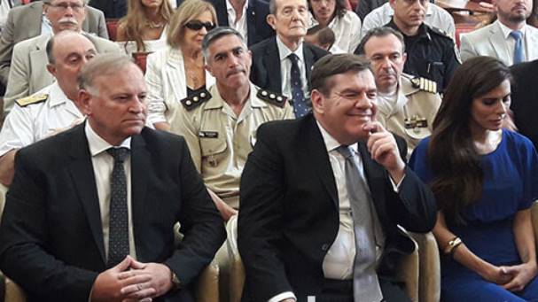 Foto: El ex intendente Daniel Katz (UCR) junto al actual intendente Guillermo Montenegro (PRO) en el recinto del HCD.
